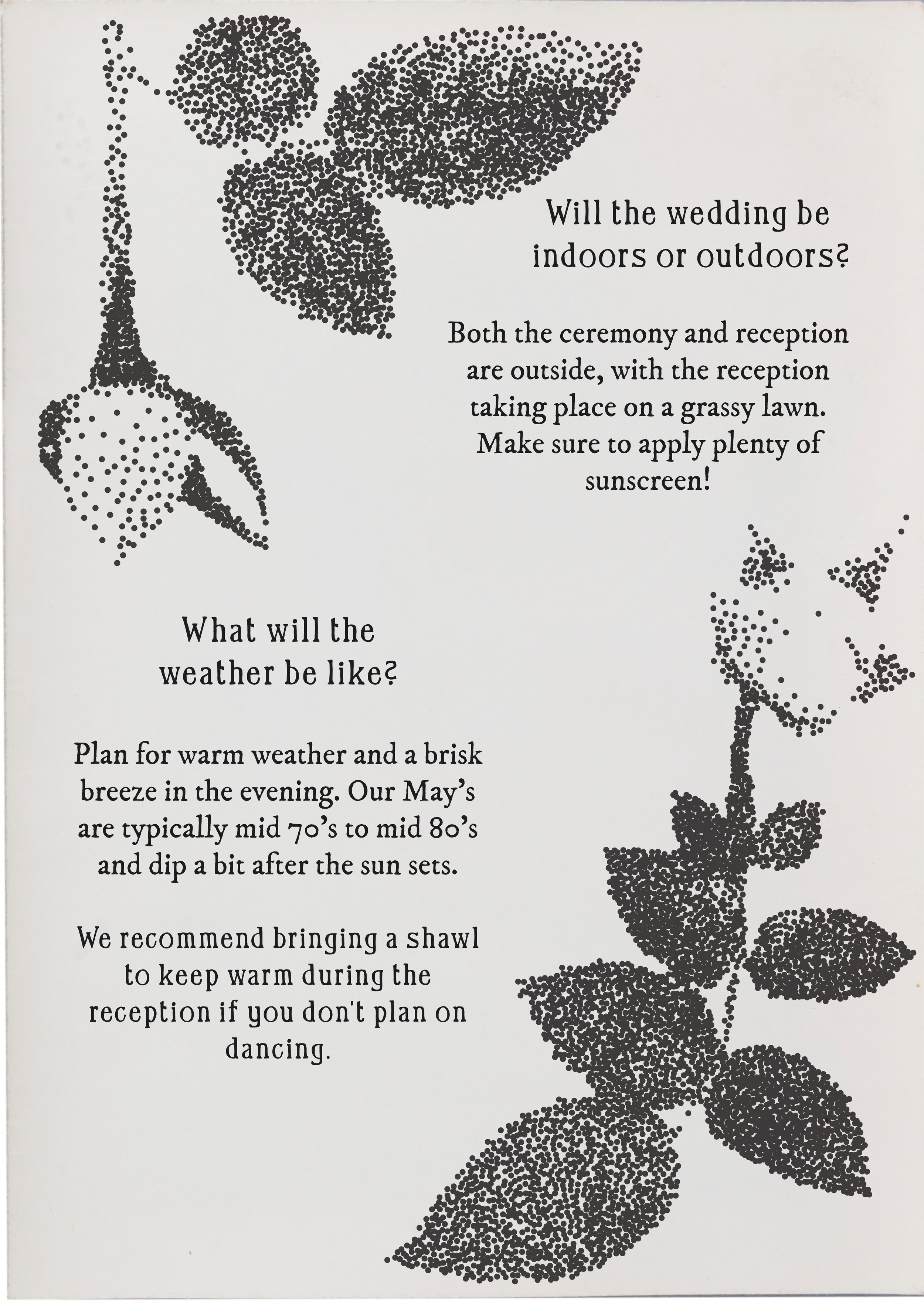 we also highly highly recommend bringing something to keep warm during the reception, it’ll likely be very windy.